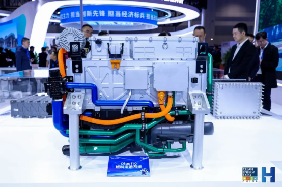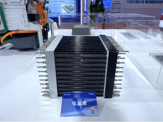 此次展出的人生就是搏兆瓦级PEM水电解制氢电解槽,额定产氢压力超过3兆帕,产氢额定速率最高可以达到300标方,安全性高,运行负荷范围可达5-150%。